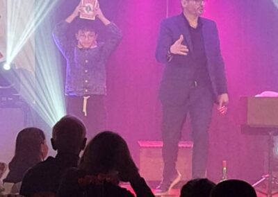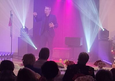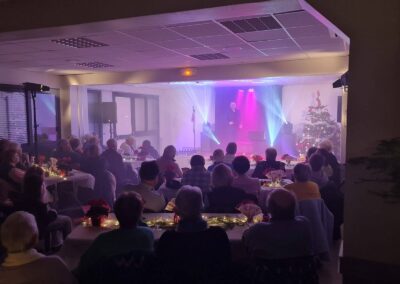 Dimanche 08 décembre, ambiance chaleureuse et festive dans la salle des fêtes transformée en cabaret : lumières tamisées, tables décorées et scène mise en valeur ont plongé les spectateurs dans l’atmosphère de l’illusion.